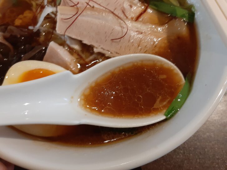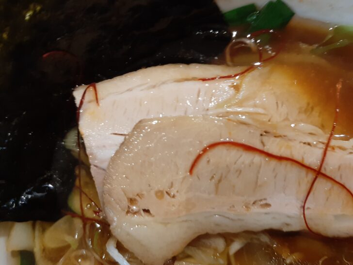 チャーシューは2枚入っていて、ホロホロと柔らかく、とっても美味しかったですね。