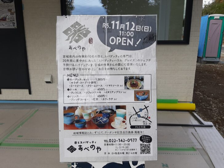 『器とスパゲッティ あべのや』は、2023年11月12日オープン予定ですが、宮城の陶磁器とスパゲッティは良いですね。どんなお店になるのか楽しみです。