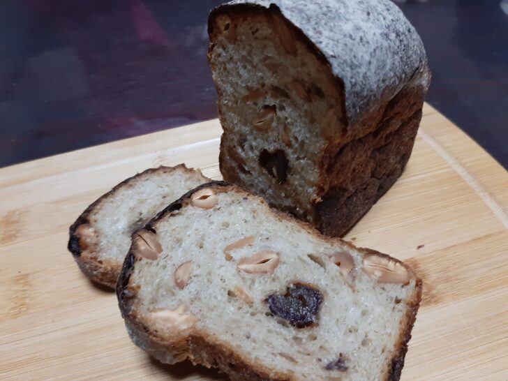 これは、デーツとカシューナッツ入りのカンパーニュです。これも美味しいです。ワインにも合って最高ですね。