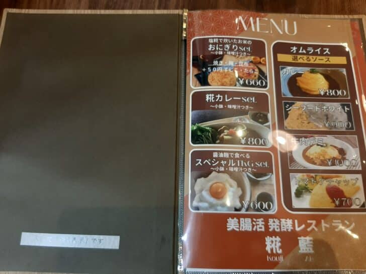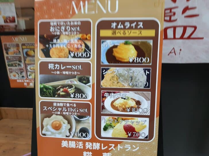 食事メニューはそんなに多くないですね。おにぎりSET、糀カレーSET、スペシャルTKG SET、オムライスは4種ありますね。