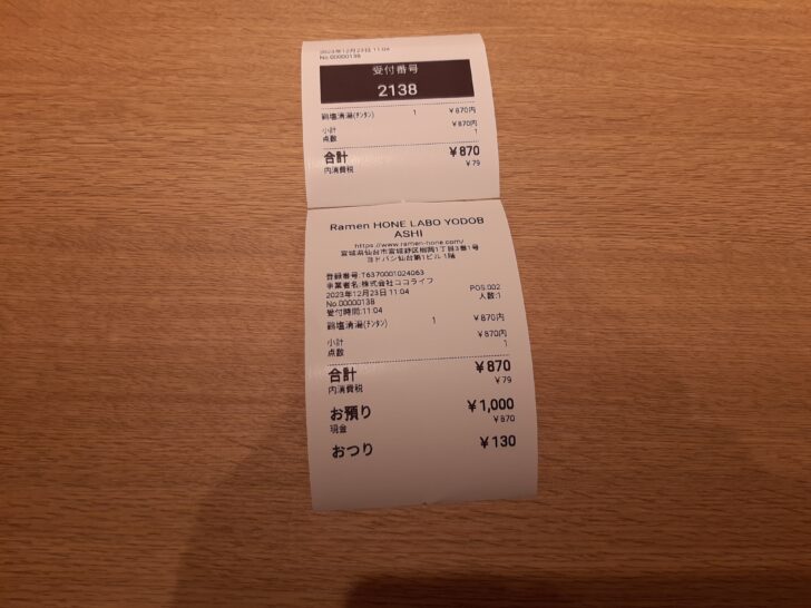 あっさり「鶏塩清湯らーめん」【税込870円】を注文