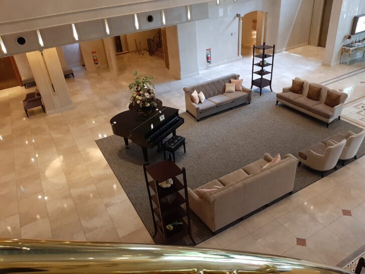 その先には、ソファーがあり、待ち合わせ等に利用できます。また、何故かグランドピアノが設置されていました。ここで演奏会などを開催することもあるんでしょうかね?この奥には、フロント&クロークがあって手荷物はこちらに預けられます。
