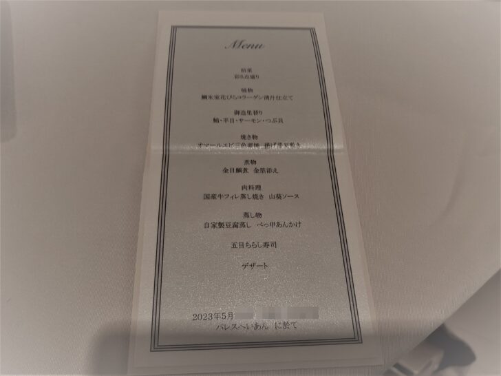 今回の披露宴のメニューです。和洋折衷のコースにしたようです。