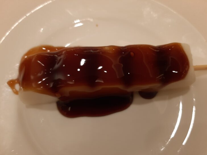 最後はコース料理ではないですが、ウェディングケーキ替わりのみたらし団子が配られました。
