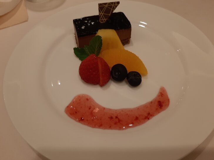 9番目は【デザート】で「チョコレートケーキと各種フルーツ」と「コーヒー」