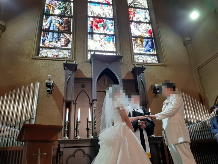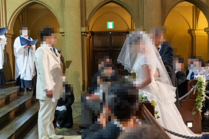 誓いの言葉を交わし指輪交換も終わり、結婚式も終盤です。