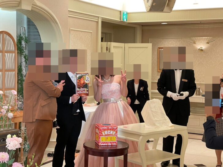 余興として、様々な商品が当たる抽選会が行われ、盛り上がりました。商品としては、蟹詰め合わせ、牛肉詰め合わせ、東京ディズニーランド入場券などというのもありました。