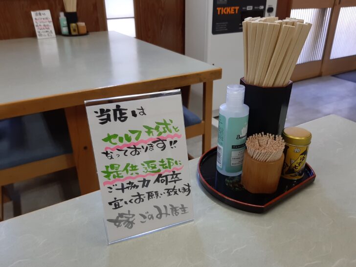テーブルに置いてある卓上調味料は、ゆず七味のみですね。これは、鶏清湯らぁー麺に入れるのがおすすめのようです。