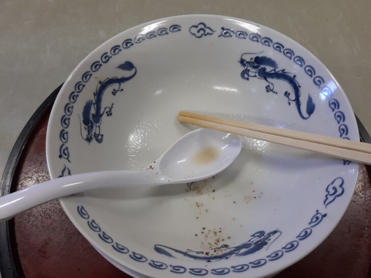 ごちそう様です。完飲・完食しました。「塩豚骨チャーシューらぁー麺」とっても美味しかったです。