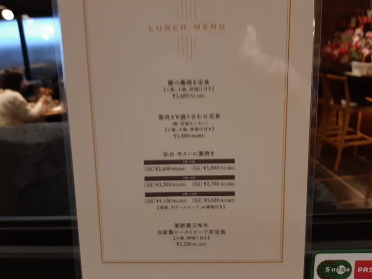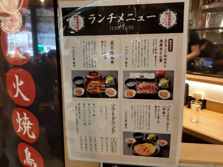 ランチメニューは3種類ありました。A5ランク仙台牛と肉厚牛たん重【2,800円】、炭火焼鳥丼【1,300円】、バターチキンカレー【1,200円】