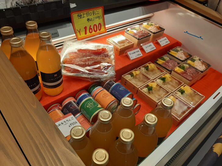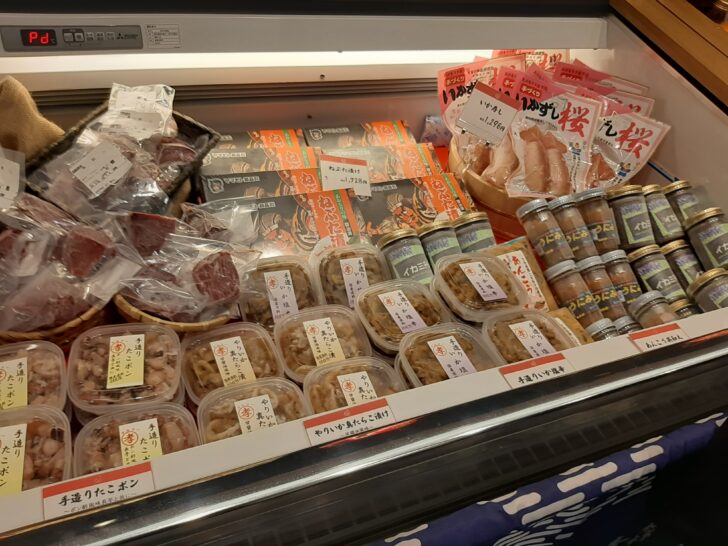 海鮮系の珍味類(たこポン、いか塩辛、あんこう共和え、いかずし、ねぶた漬け)が販売されていました。