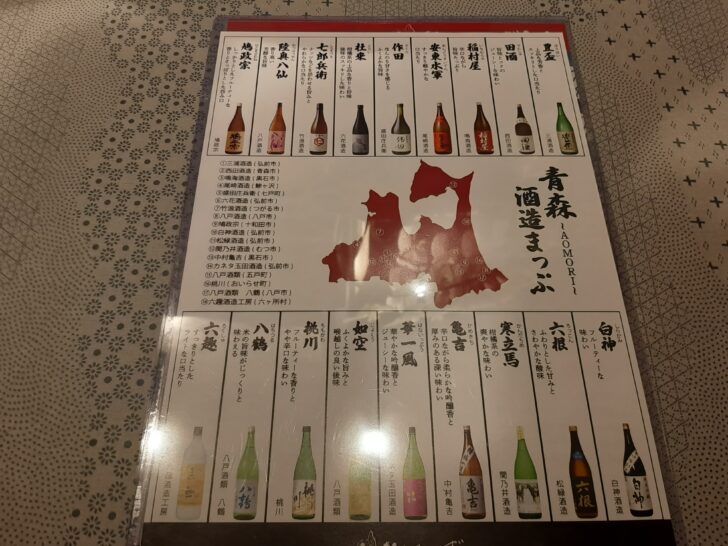 青森県内の18酒蔵のお酒が飲めるようです。こんなにたくさん青森のお酒を置いているお店は、仙台には無さそうですね。