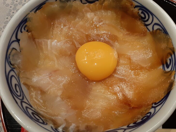 ひらめの漬けがたっぷりと載って、真ん中に卵黄が載っていました。これは、イチオシメニューだけあって凄く美味しかったです。また食べたいと思いました。