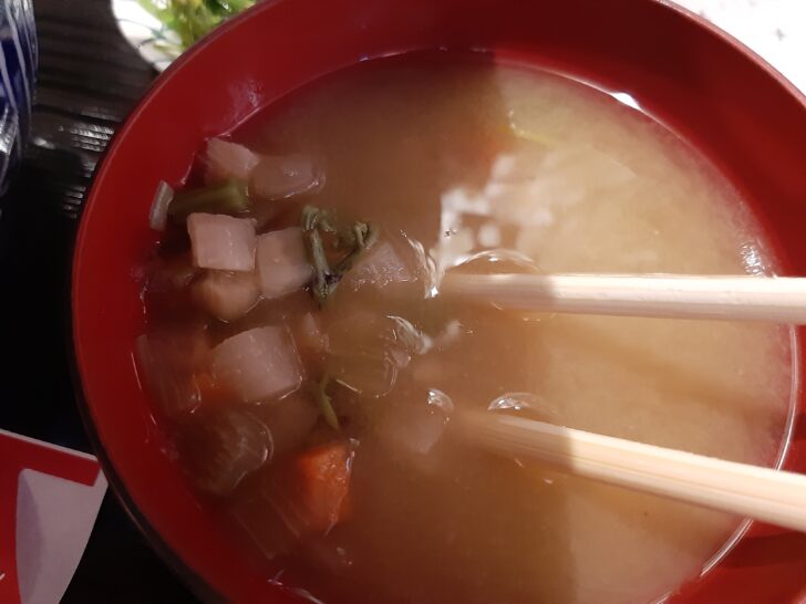 味噌汁は、わらび、大根、人参、ごぼう、こんにゃく等の具材がたくさん入っている「けの汁」でした。これも美味しかったです。