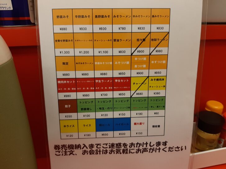 何を注文するか悩んだのですが、どうも一番人気らしい「辛野菜みそラーメン」【930円】とチャーシューを食べてみたかったので、「チャーシュー2枚」【150円】をトッピングしました。