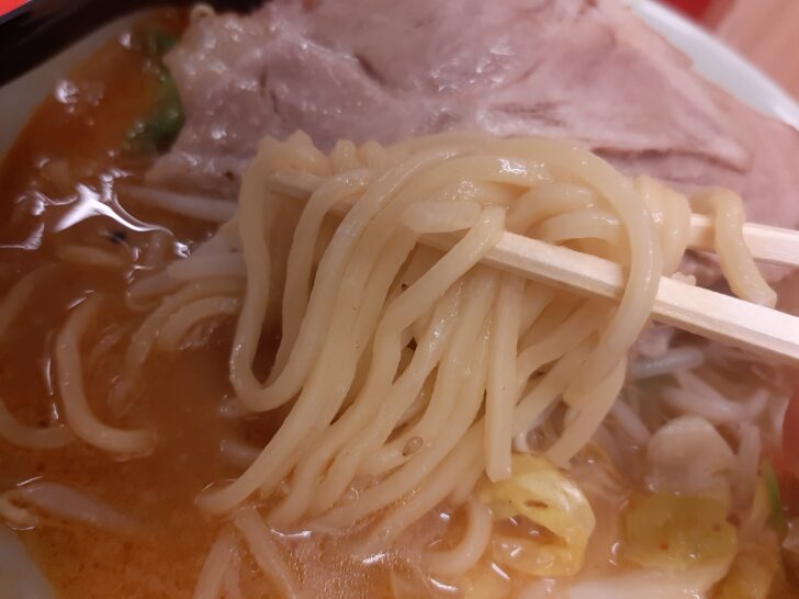 麺はもちもちの中太ストレート麺で味噌スープに合っていて美味しいですね。