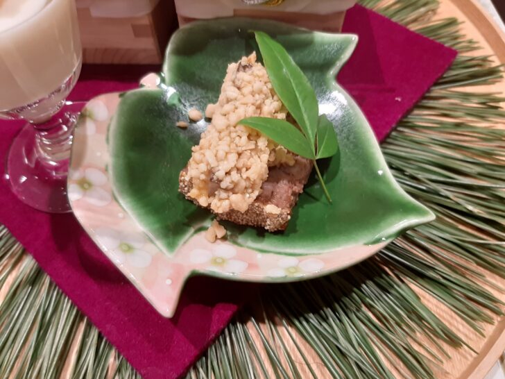 これは、上が牛蒡ナッツ、下が鶏袱紗焼きです。