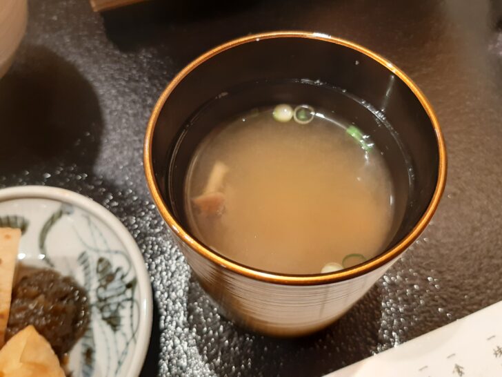 7品目は味噌汁です。具材は、なめこ、えのき、豆腐でした。