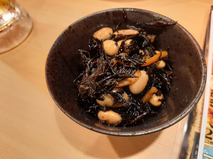 お通し代(テーブルチャージ)として【税込390円】掛かりますね。本日のお通しは、ひじき煮でした。これは健康に良さそうですし、美味しかったです。