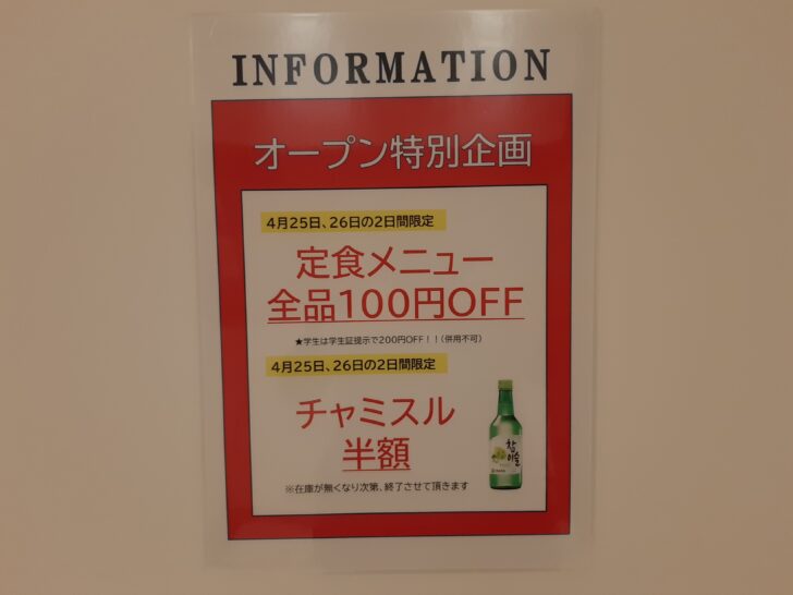 オープン特別企画の期間は、4/25(木)~26(金)とオープン日から2日間になるようです。