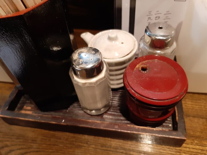 卓上調味料は、唐辛子、胡椒、塩、醤油でした。