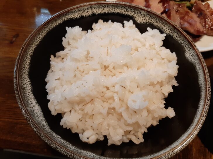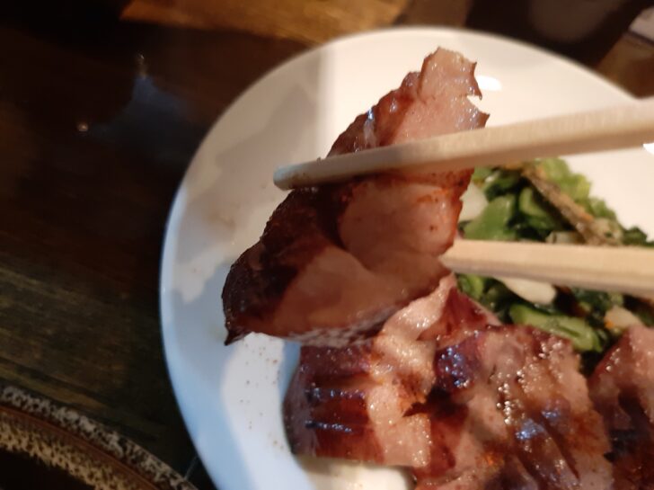 分厚い牛たんが6切れで、付け合せには、おみ漬け・青唐辛子の味噌漬けが付いてきました。