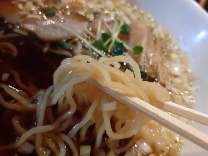 麺は中細で少しウェーブした麺でしたが、あまり特徴は感じられない普通の麺でしたね。