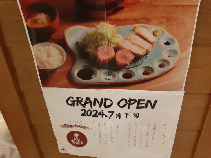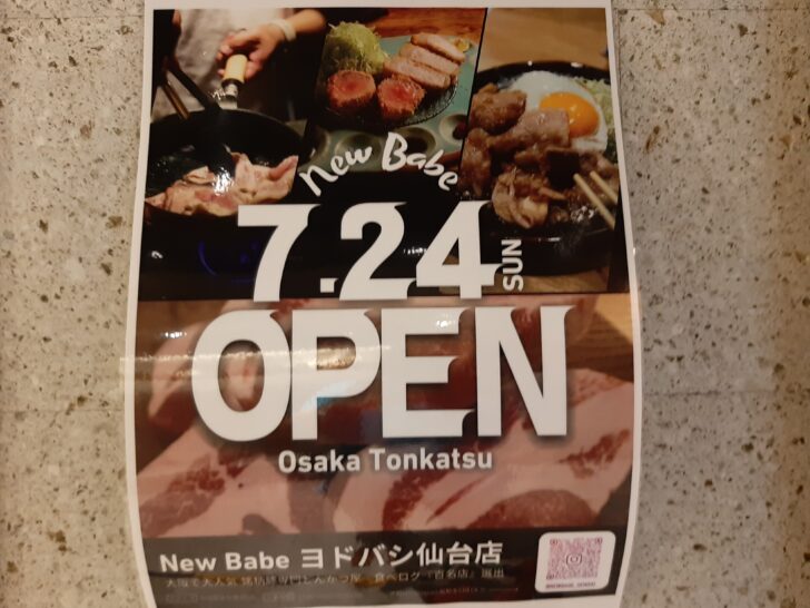 【仙台初出店】の大阪とんかつ『ニューベイブ ヨドバシ仙台店』が「ヨドバシ仙台第1ビル6Fのヨドレス」に2024年7月24日(水)にオープン予定であることが分かったので紹介します。既にお店にもオープン日が、掲示されていました。