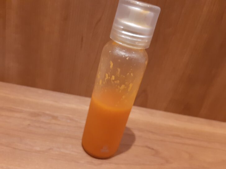 店員さんにおすすめを聞いたら、林SPFとのことだったので、「林SPFとんかつ御膳ロース(140g)」【税込\2,400】を注文。注文したら、まずキャベツに掛ける為のにんじんドレッシングが提供されました。