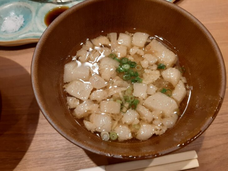 豚汁は豚の脂身がたっぷりと入っていました。野菜系は大根、ネギなどが入っていました。コクがあって美味しいのですが、個人的にはもっと野菜タップリの方が良かったかなと思いました。