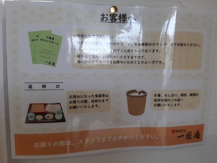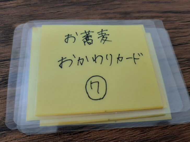 食べ放題の蕎麦のおかわりには、「おかわりカード」を店員さんに渡します。1枚で半人前、2枚で1人前になります。