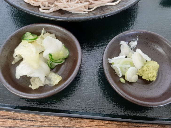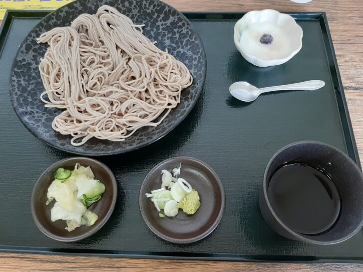今回は、初訪問なのでお試しで『盛りそば』【税込980円】を注文してみました。漬物とヨーグルトが付いていました。