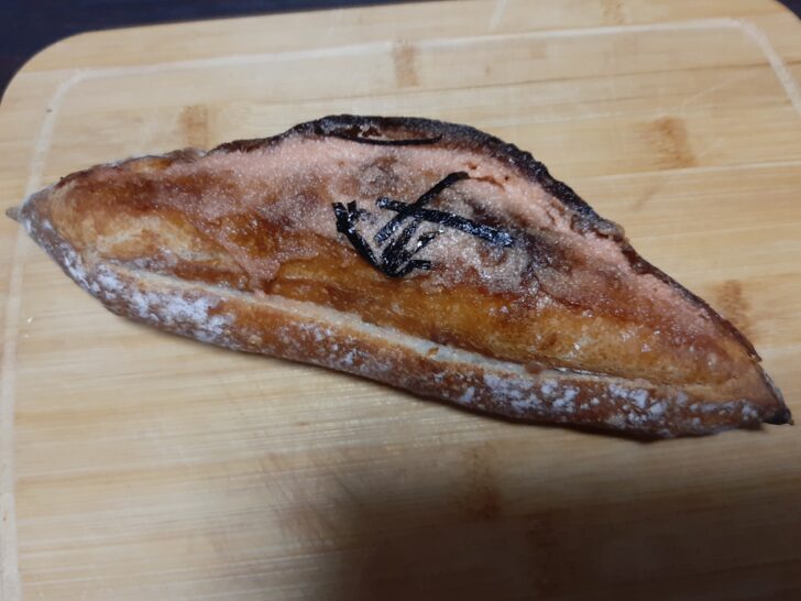 これは明太子フランス【\320】ですね。明太子がたっぷりで、フランスパンが美味しいです。また買いたいと思いました。