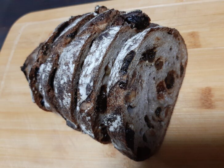 これはカンパーニュ ノアレザン ハーフ【\410】です。パンも美味しくて、クルミとレーズンもたっぷりで美味しいです。ハード系パン好きにはたまらないですね。リピ確定ですね。