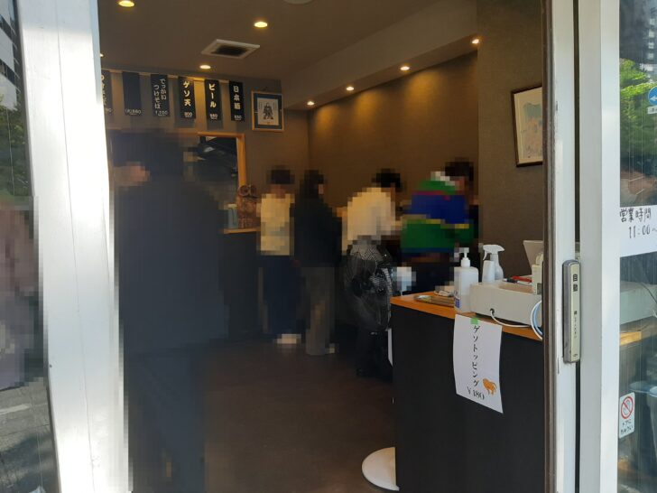注文の仕方は、店の入口左側にあるレジ支払う前払い制になっています。料金を支払うと、受付番号が入ったレシートが貰えます。料理が出来上がる迄は、 店内の待ち席か、又は店頭で待つことになります。料理が出来上がると、受付番号が呼ばれるので、料理提供口で料理を受取り、空いている席に座ります。