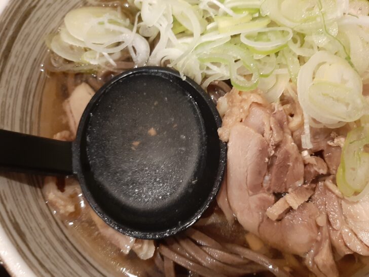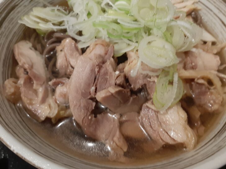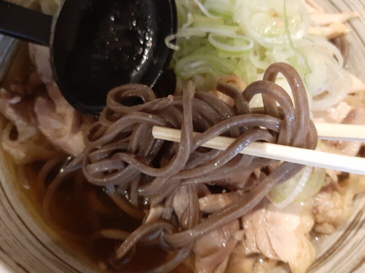 今回もいつもの「肉そば(並)」【税込\760】を注文しました。(並)でもそばの盛りは良いですね。若い人は足りないかも知れませんが、私には十分です。また鶏肉もたっぷりなのとねぎ多めなのも嬉しいですね。
