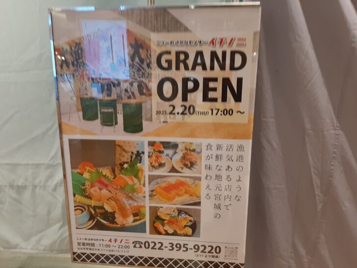 『ニューおさかなセンター イチノニ』が、2025年2月20日に仙台パルコ2にオープンします。【立飲みエリア】も設けているようなので、気軽にサク飲みも可能なようなので、オープンしたら早速行ってみたいと思います。