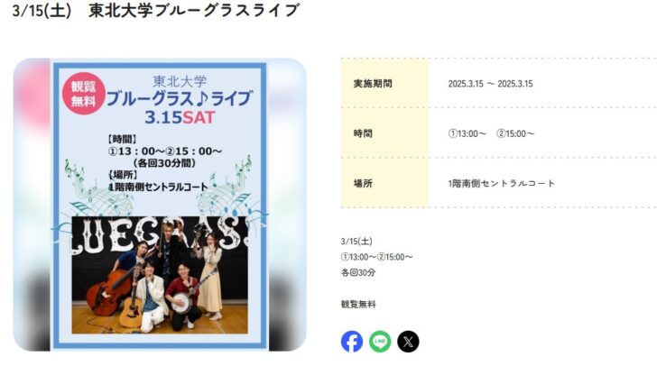 東北大学ブルーグラスライブ(実施期間:2025.3.15)