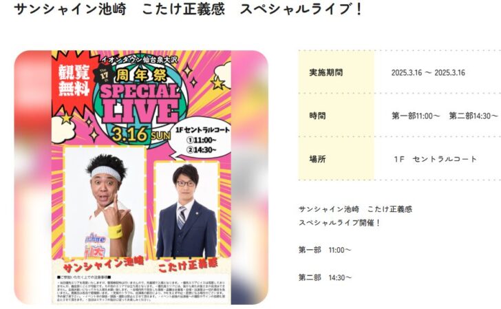 5. サンシャイン池崎&こたけ正義感 スペシャルライブ(実施期間:2025.3.16)