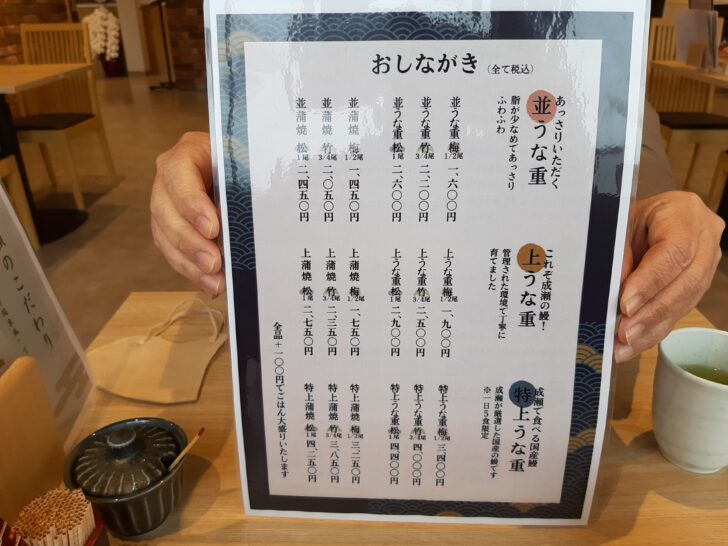 『鰻の成瀬 イオンモール富谷店』のメニュー