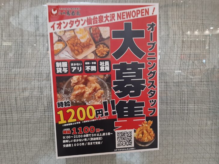 イオンタウン仙台泉大沢は、2022年3月16の地震で大きな被害を受けました。その為、長期に渡り、飲食店街や専門店街が営業できず、多くのお店がの撤退しました。現在は、そのような状態から復活して、賑わい回復していますね。ただし、2Fフードコートと1F飲食店街の飲食店が以前に比べて少ないので、もう少し飲食店が増えれば良いと思っていましたが、今回、フードコートに『九州鳥若丸 イオンタウン仙台泉大沢』が出店するのは嬉しいですね。オープンしたらすぐに行ってみたいです。
