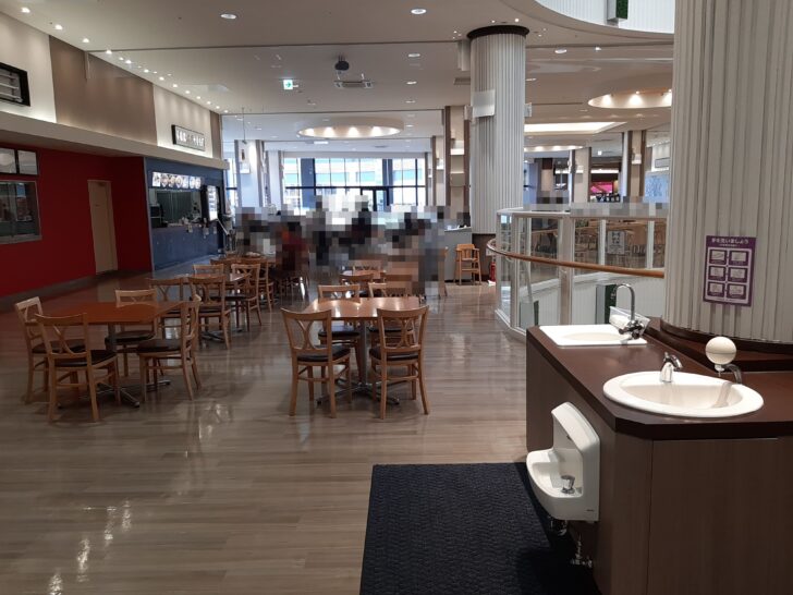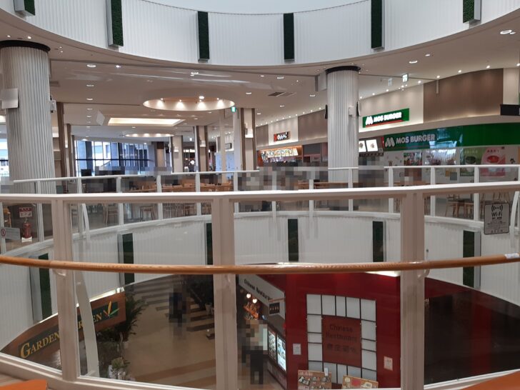 こちらが、イオンタウン仙台泉大沢の2Fのフードコートですが、一時は、たくさんあった飲食店も多くが撤退して、現在は幸楽苑、はなまるうどん、モスバーガー、Aimu Crepeの4店舗しか営業していないので、寂しいですね。