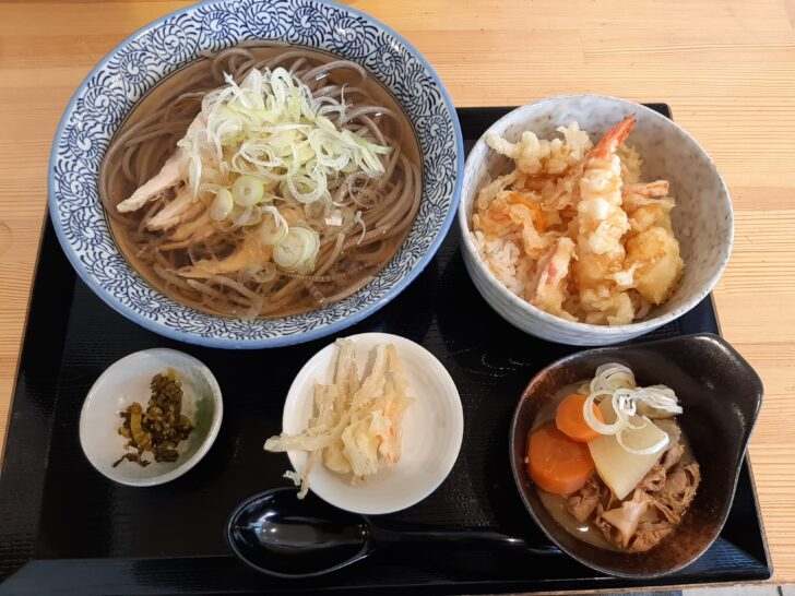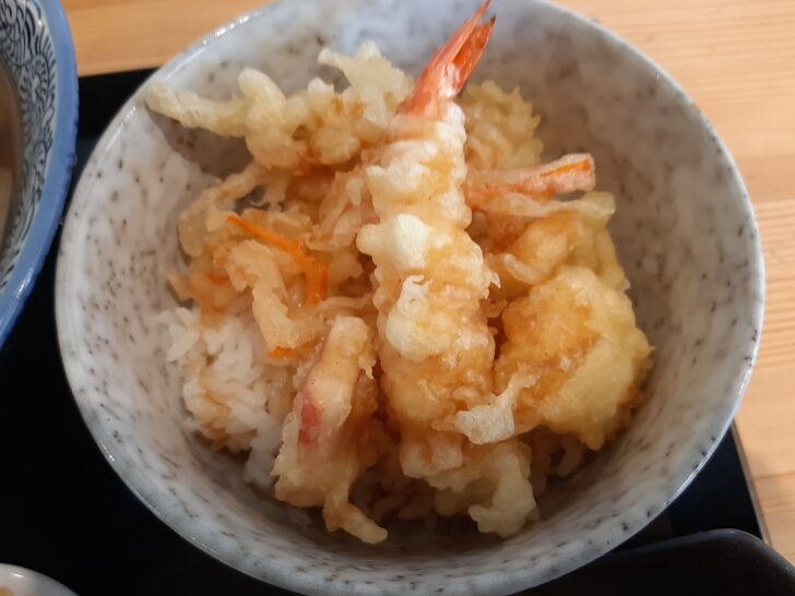 ミニ天丼は、思ったよりボリュームがありました。天ぷらも、海老天、いか天、カニカマ天、ごぼう天が載っていて、美味しかったです。