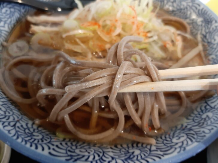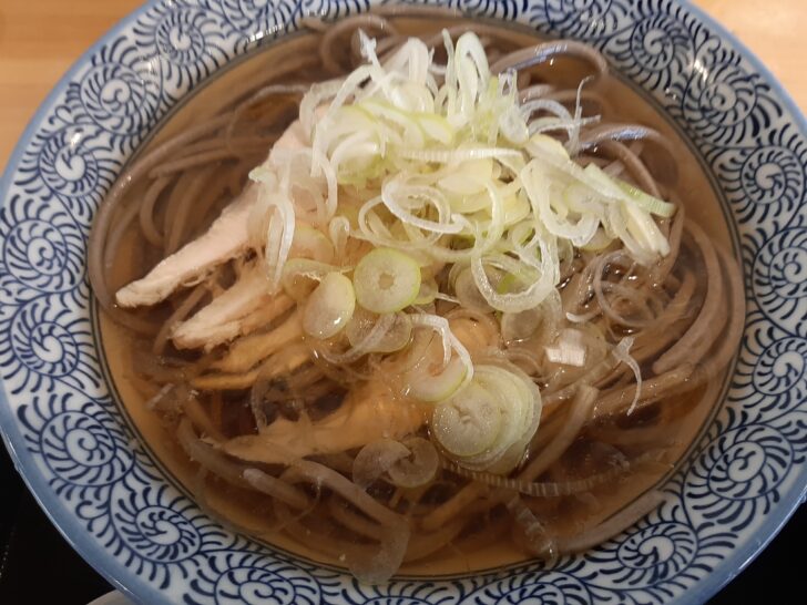 蕎麦は田舎蕎麦風の太麺でコシがある手打ち麺のようで、私の好きな麺で美味しいですね。スープは若干甘めなんですが、鶏の出汁が効いていて、凄く美味しいですね。