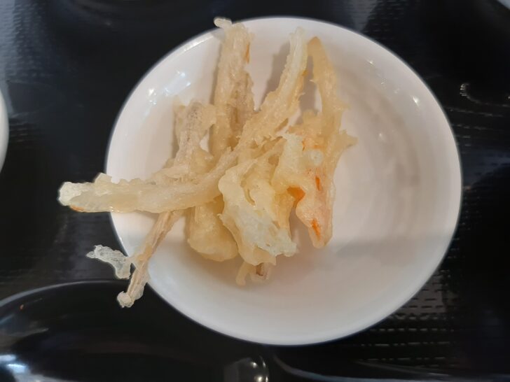 バラ天はごぼう、人参などの天ぷらで一口サイズでした。ミニ天丼セットの場合は不要かも知れませんね。鶏めしセットの場合には、嬉しいかも知れません。