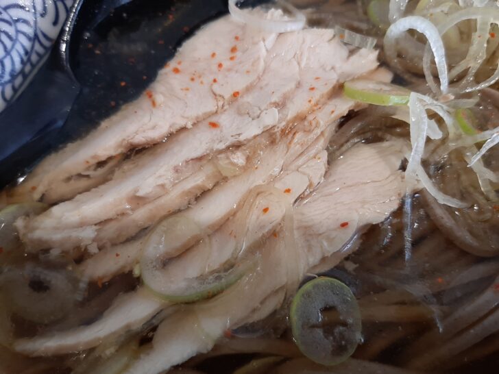 鶏肉は親鳥ではなく若鳥と思われるのが6枚載っていました。凄く柔らかい鶏肉で美味しかったですね。
