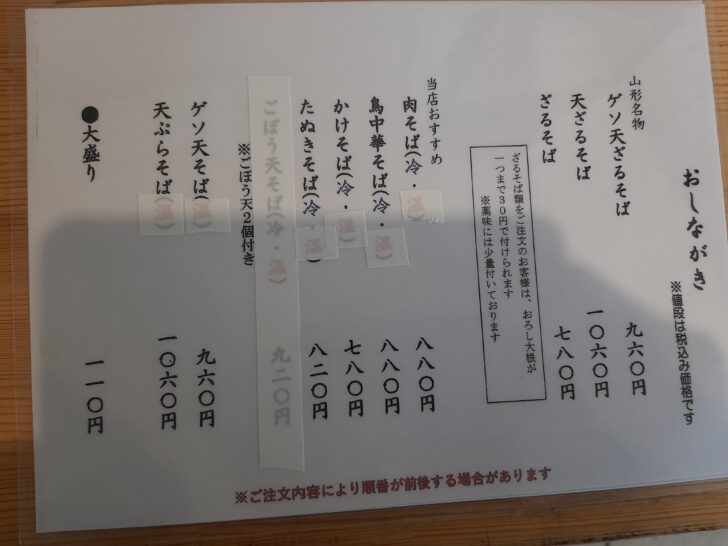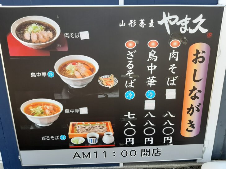 山形蕎麦『やま久 泉中央分店』のメニュー
