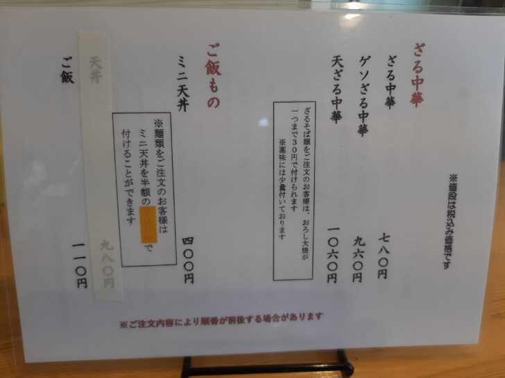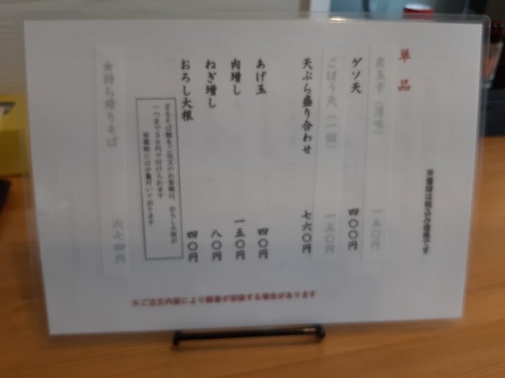 現在『やま久 泉中央分店』のメニューは、市名坂店と比べて少ないようです。また、温かいそばはやっていないようです。