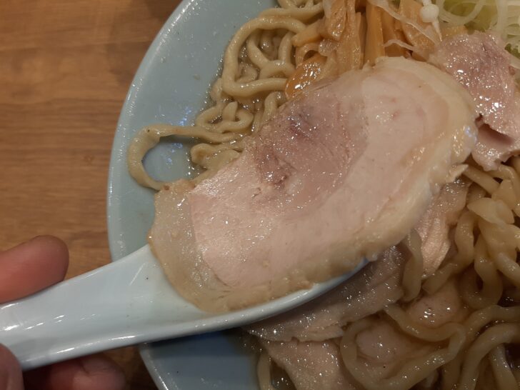 チャーシューがまた美味しいですね。味付けも良いし、厚めなのですが、ホロホロと崩れるような柔らかさです。