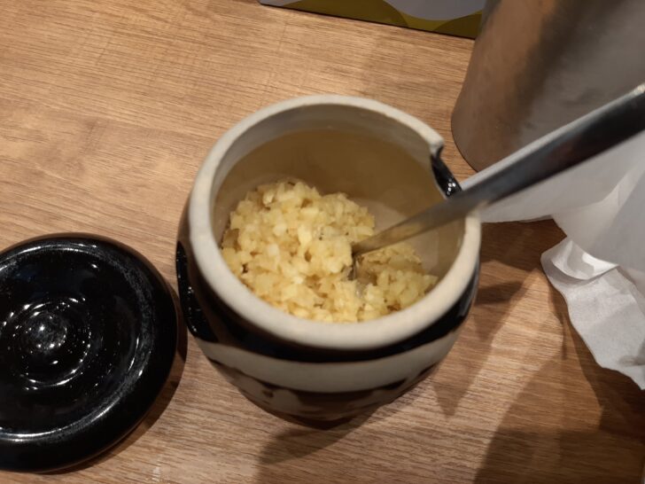 煮干しラーメンについては、特にないのですが、途中で味変をしてみました。刻み生姜を入れても美味しいです。